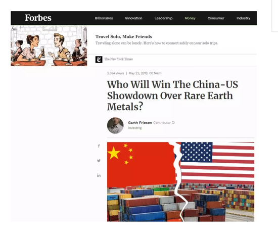 《福布斯》也比较“乐观”。在题为《中美稀土摊牌谁会赢》的文章中,作者并没有提及中国在稀土制造中技术领先于美国,而是把美国稀土产业落后,归因于美国“不愿意”做。