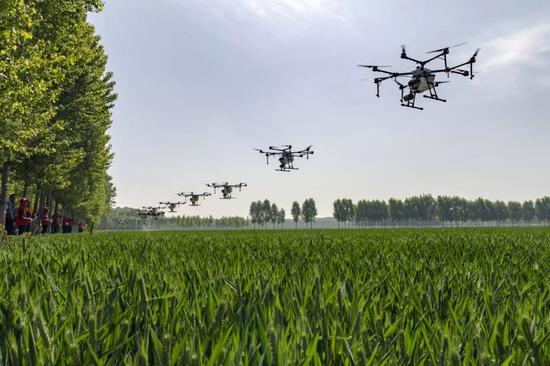 (河南省济源市梨林镇大许村无人机飞防作业,摄影师@邓国晖)