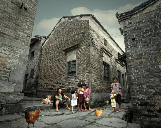 (湖南桂阳县庙下古村的妇女和儿童,摄影师@程国强)