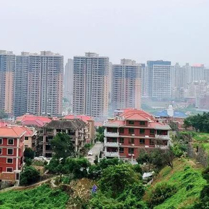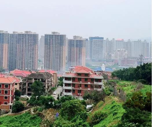 凤凰别墅山庄(近处)以及商品房“名邦豪苑”(远处高楼)。摄影/本刊记者黄孝光
