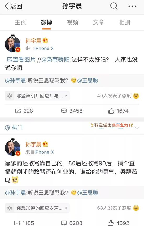 孙宇晨怼王思聪:靠爹的人,谁给你的勇气?