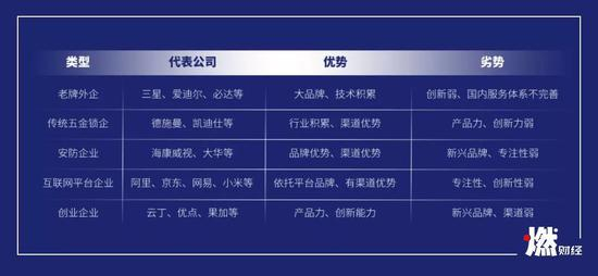 燃财经梳理发现,目前市面上已有的智能锁企业大致可分为五类,包括老牌外企、传统五金锁企、安防企业、互联网平台企业以及创业企业。
