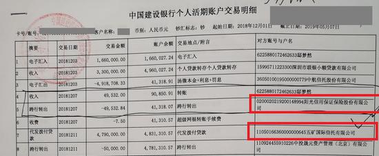 受害人资金流水显示,中安民生掌握其银行卡期间,阳光信保在获得五矿向其借款之前就和该账户发生了资金往来