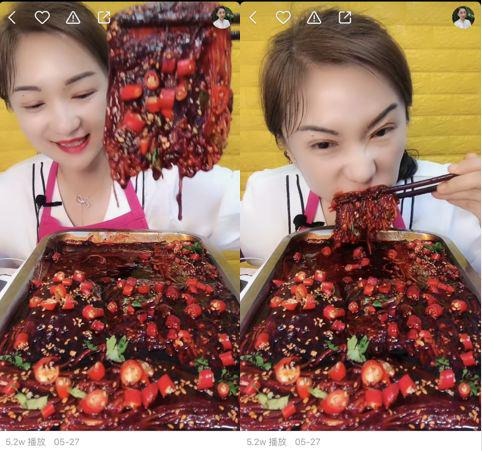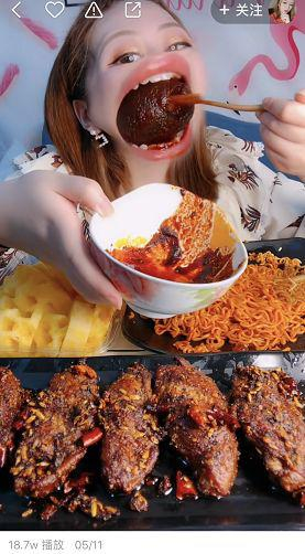 但土味吃播主们,面对同样巨量的食物,却是以风卷残云之式疯狂地把食物往嘴里塞,就算是再美的姑娘,也无法让人体会到半分美感。
