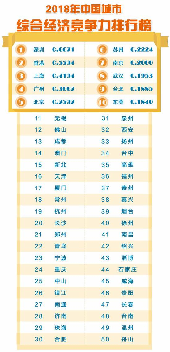 10、2018中国城市竞争力排行出炉:深圳居首 北京无缘前三