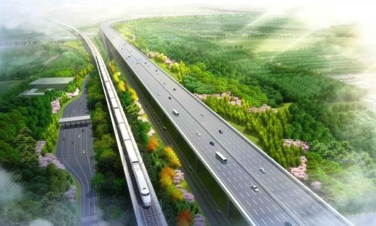 ▲京雄城际铁路、高速、轨道交通新机场线、团河路及综合管廊并走廊效果图