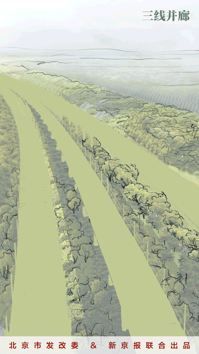 项目位于北京大兴国际机场高速公路外侧及高速与京雄城际铁路、轨道交通新机场线三条交通干线并行段的夹缝空间,全部实施高品质绿化,总面积约8200亩,形成了约30公里长、300米宽的绿色通道。