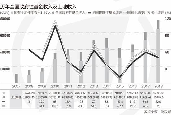 在一般公共预算收入之外,政府性基金收入规模近些年也不断扩大,尤其是2008年土地出让收入全额纳入预算管理,政府性基金收入不断攀升。