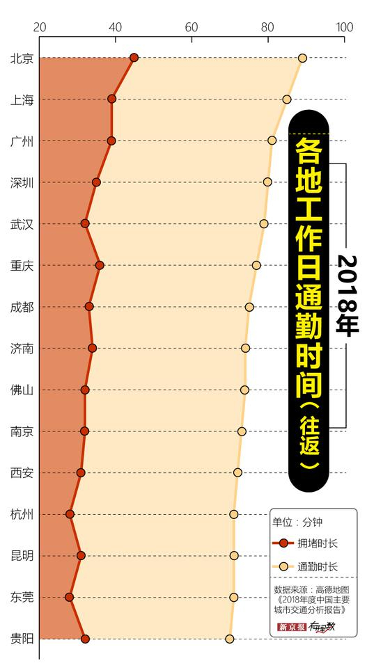 在很多方面,一线城市总是拔得头筹,通勤时长当然也不例外。