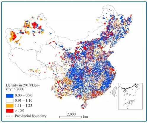 而其合作伙伴清华大学龙瀛教授根据两次人口普查得出的数据显示,2000年-2010年间,有180个城市的人口在流失,从城市密度来看,将近1/3国土面积的人口在变少。