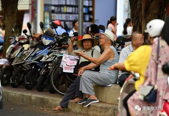 ▲7月11日下午,海口市琼山区的三角公园,很多市民在此交流私彩信息。新京报记者 吴江 摄