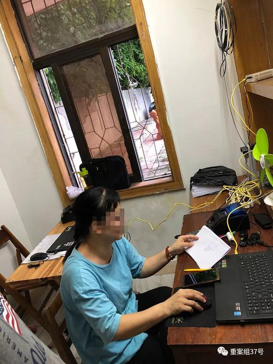 ▲7 月 12 日下午,海口一私彩窝点内,女销售员正打印售卖私彩。新京报记者 吴江 摄