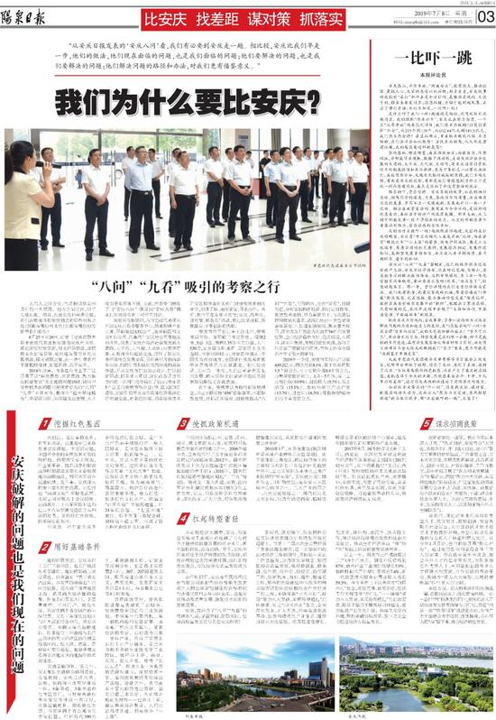 该专栏开门见山:“从安庆日报发表的‘安庆八问’看,我们有必要到安庆走一趟。相比较,安庆比我们早走一步,他们的做法,他们现在面临的问题,也是我们面临的问题;他们要解决的问题,也是我们要解决的问题;他们解决问题的路径和办法,对我们更有借鉴意义。”