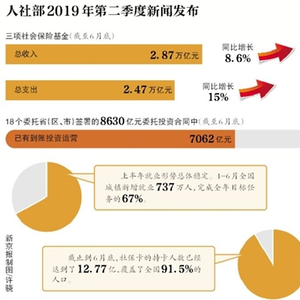 人社部:截至6月底三项社会保险基金总收入2.87万亿