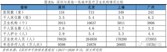 深圳面临着土地资源不足、产业外迁、城市更新、优质公共服务资源短缺等问题。第一,深圳土地面积仅为1997平方公里,分别为北京、上海、广州的1/8、1/3、1/4,发展空间严重不足。第二,随着深圳土地成本上升,部分制造业生产部门开始外迁,华为生产手机和pad的终端总部搬到东莞,中兴将生产基地迁往河源,比亚迪在汕尾投资建设新能源汽车产业基地。为破除土地资源瓶颈、推动区域协同发展、降低企业成本,深圳尝试发展飞地经济,如2011年成立深圳汕尾特别合作区。第三,深圳市有全国规模最大的城中村,城市更新任务艰巨。2018年深圳城中村用地总规模约320平方公里,占深圳总面积的16%。第四,优质公共服务资源供给短缺已成为制约深圳发展的瓶颈。教育方面,基础教育学位供需十分紧张,2017年公办小一学位缺口达4.6万个;科教资源不足,虽在大力引进国内名校,但要形成规模还需时日。医疗方面,全市各级各类医院数量只有134家,分别仅为北京的19.1%、上海的38.4%和广州的58.5%;三甲医院数量远低于北京、上海、广州等城市;每千人病床数仅为3.5张,分别为北京的2/3、上海的2/3,广州的1/2。