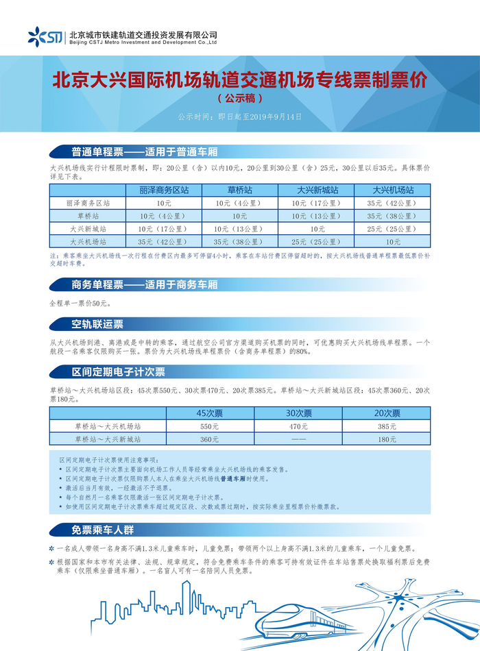 大兴机场线票价方案公示:草桥到新机场35元