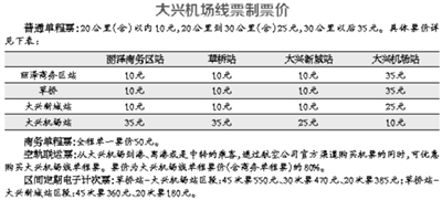 据城市铁建公司相关负责人透露,在票制上,大兴机场线拟实行计程限时票制,乘客乘坐大兴机场线一次行程在付费区内最多可停留4小时,乘客在车站付费区停留超时的,按大兴机场线普通单程票最低票价补交超时车费。