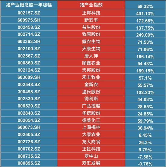在去年非洲猪瘟爆发之后,猪肉价格上涨的预期开始抬头,整个猪肉概念股板块。Wind猪产业指数一年来涨幅接近70%。