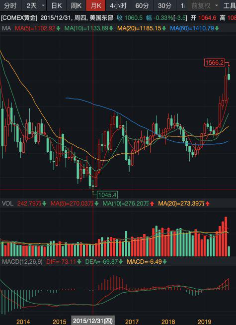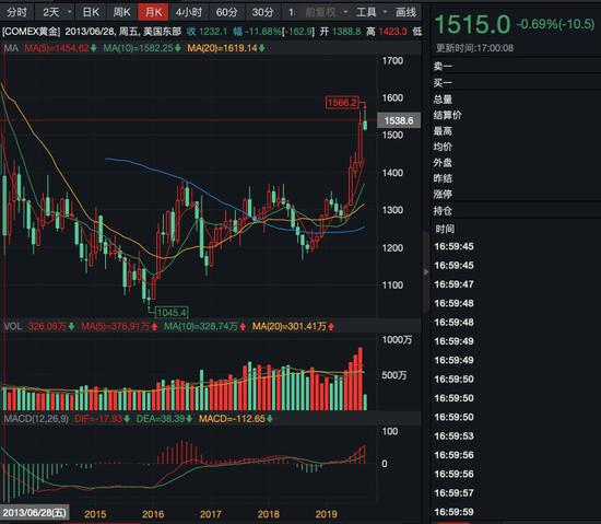 6月以来,受多重因素影响,黄金启动了一波久违的强势上涨,其中6月涨幅7.73%,创下两年来最好月度表现,7月微涨近1%,8月再度大涨7.23%,金价一举站上1500美元,甚至一度突破1560美元,创下6年多以来最高点。
