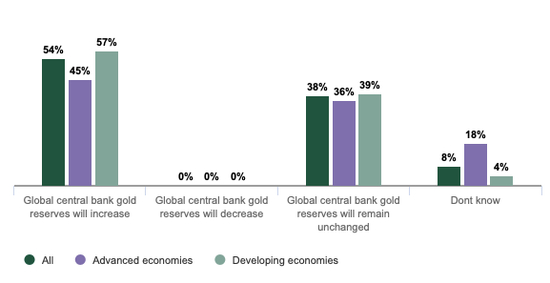 世界黄金协的最新报告显示,各国央行继续以健康的速度积累黄金储备,截至今年7月,全球官方黄金储备共计34407.58吨。此外世界黄金协会开展的一项调查显示,认为全球央行黄金储备在接下来一年将上升的占比54%,维持不变的占比38%,但没有被调查者认为黄金储备会下降。
