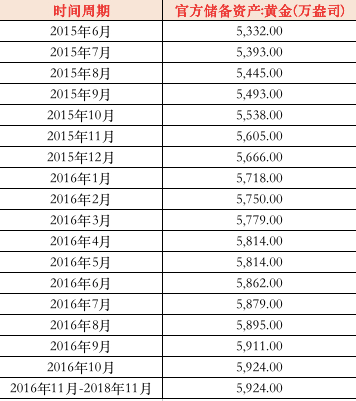 2001年12月,中国黄金储备增至1608万盎司并维持了一年时间;2002年12月,黄金储备再度增至1929万盎司,直到2009年3月,这个数据未再变动。