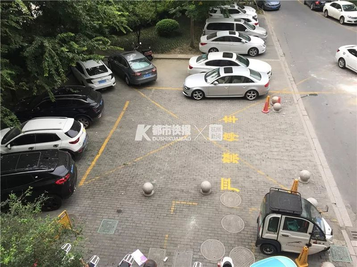 一开始,车位多车子少,哪个业主买了车子,就在自家楼下画个框,这样大家都默认这个车位是这位人家的。直到有一天,小赵说具体是哪一年他也不记得,因为海博物业之前已经有好几任物业了:“忽然,车子比车位多,不够划了。”