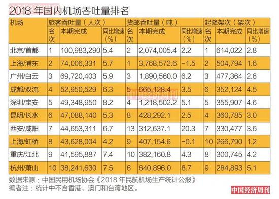 2018年,成都双流国际机场年旅客吞吐量突破5000万人次,位居北上广3座机场之后的第四位,货邮吞吐量超过66万吨,也压重庆江北国际机场一头。