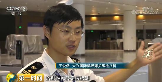 大兴国际机场海关旅检八科 王俊侨:它把红外测温系统、放射性物质定位检测和人员信息采集全部集成到了一台设备上,这样可以最大限度保障旅客“无感通关”,这个通道的总长度是3.5米,旅客通关时间大概是3-4秒。