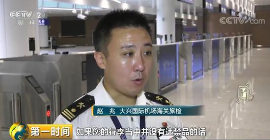 大兴国际机场海关旅检 赵兆:如果您的行李当中并没有违禁品,在提取到托运行李之后,将会快速通过海关现场,实现免排队、免搬箱、免查验、零等待,真正实现“无感通关”。