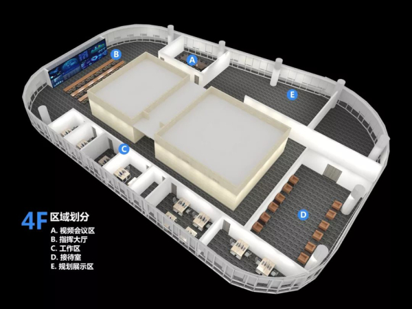 四层的5G创新应用在城市管理中的实践及城市规划展示区,其中北外滩街道城市运行综合管理中心利用5G+物联网技术,打造虹口城市数字底座,实现数据融通、挖掘、分析与共享;而城市规划展示区则运用数字媒体展示了区域经济社会发展情况及精细化管理新风貌。