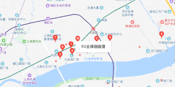 “5G全球创新港”移动5G覆盖 图截至百度地图