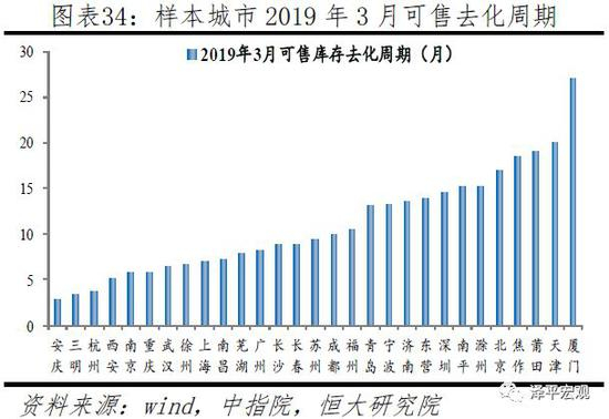 从可售库存看,2019年3月一线、二线、三四线样本城市库存去化周期分别为11.7、10.5、11.4个月,三四线城市库存去化周期从2018年下半年以来有一定上升。可售商品住宅数据可得性较差,我们选取分线样本城市进行分析。一线城市选取4城:北京、上海、广州、深圳,二线城市选取16城:天津、重庆、南京、武汉、成都、苏州、厦门、西安、长沙、宁波、福州、青岛、长春、杭州、济南、南昌,三四线城市选取9城:徐州、莆田、东营、芜湖、焦作、南平、三明、滁州、安庆。2015年以来,得益于棚改货币化政策三四线城市可售库存去化周期持续走低,2018年5-6月最低不到7个月,但逐渐上升。2019年3月,一线、二线和三四线城市可售商品住宅去化周期分别为11.7、10.5和11.4个月。需要注意的是,库存去化周期对销售非常敏感,比如部分城市商品住宅销量当前处于历史低位,一旦成交回暖,去化周期将明显下降。