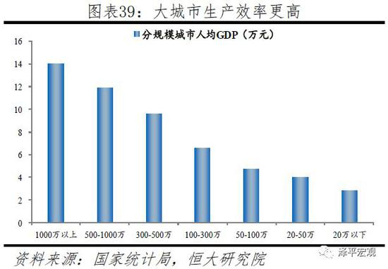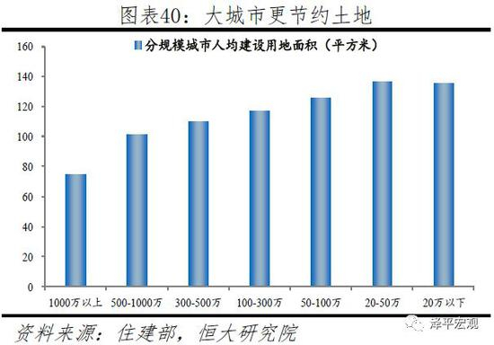 以中心城市为引领的都市圈城市群更具生产效率,更节约土地、能源,是支撑中国经济高质量发展的主要平台,是中国当前以及未来发展的重点。根据基本面排名,2019年发展潜力百强城市中有96个位于19大城市群,其中处于24个千万级大都市圈的有54个。2018年11月,国务院《关于建立更加有效的区域协调发展新机制的意见》要求,建立以中心城市引领城市群发展、城市群带动区域发展新模式,推动区域板块之间融合互动发展。以住建部城区常住人口为标准,将城市划分为1000万以上、500-1000万、300-500万、100-300万、50-100万、20-50万、20万以下七类。从人均生产效率看,分规模人均创造GDP呈现规模从大到小的递减现象;1000万人以上的城市人均创造14万元的GDP,是100-300万人城市的2.1倍,是20万人以下城市的约5倍。从人均城市建设用地看,大城市明显更节约土地资源,分规模人均创造GDP呈现规模从大到小的递增现象,2017年1000万人以上城市人均建设用地仅74.5平方米,而100-300万、20万以下城市分别为117.3、135.5平方米。