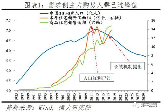 从总体看,20-50岁人口于2013年见顶、需求峰值已过,存量住房套户比近1.1和房地产长效机制加快构建,标志着中国房地产市场告别高增长阶段,进入高质量发展的新时代新周期。在需求侧,中国20-50岁主力置业人群规模于2013年达峰值,住宅新开工面积2011、2013年达超过14亿平的双峰,2018年商品住宅销售面积达14.8亿平方米、大概率为历史峰值。按照当前人口发展趋势,中国人口总量将在2024年左右见顶,如后续鼓励生育,见顶时间也最多延迟到2031年。在供给侧,1978年改革开放以来,特别是1998年房改以来,中国城镇居民基本实现从筒子楼到住宅小区,从全民蜗居到基本适居的历史性跨越,全国层面的城镇住房套户比从不到0.8上升到接近1.1,表明住房短缺时代终结。在政策层面,房地产调控思路发生重大转变,逐渐从短期调控政策向长效机制建设过渡。过去20年,中国房地产调控目标在稳增长和控房价之间几经反复,调控思路重抑制需求轻增加供给、重短期调控轻长效机制,调控手段重行政调控轻经济手段,结果房价越调越涨。2016年12月中央明确定位“房子是用来住的、不是用来炒的”,开始提出建立促进房地产平稳健康发展的基础性制度和长效机制,房地产调控思路逐渐从短期调控政策向长效机制建设过渡,从全国一盘棋向因城施策过渡,从以商品属性为主向构建强调居住属性的住房制度过渡。
