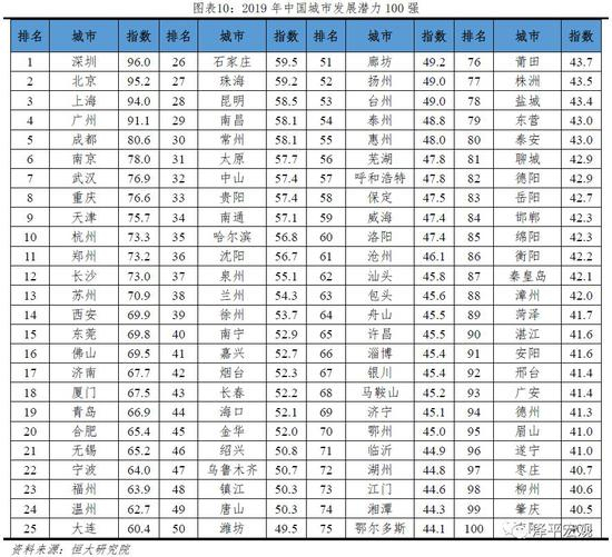 2019中国城市发展潜力排名:深北上广稳居前四