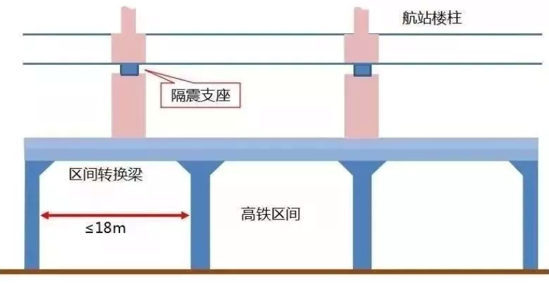 航站楼距离高铁垂直距离仅为11米,高铁以250公里的时速通过510米长的“高铁隧道”时,会产生较强的振动和较大风压。大兴国际机场采用国内首创层间隔震技术——在航站楼首层板下设置隔震支座,将航站楼首层和地下一层完全隔开,既隔震又不影响地下层使用。