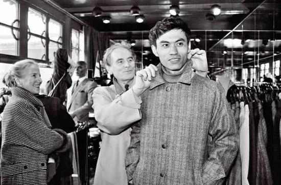 1981年,皮尔·卡丹为一位中国模特整理衣服
