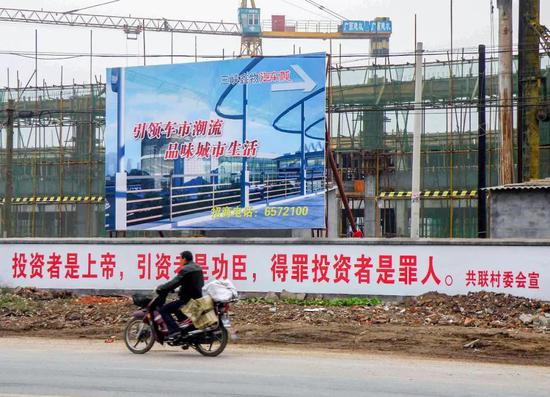地方政府官员展开政绩竞争从而制造出“有为的政府”每个地方政府都会投入大量人力物力用于招商引资(湖北宜昌城郊的一处标语,较有代表性,图片源自@VCG)