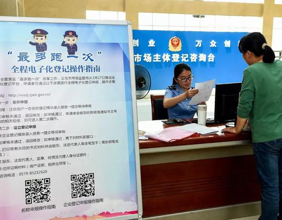2016年浙江率先提出“最多跑一次”的政务改革目标甚至在之后成立了“浙江省最多跑一次改革办公室” 该举措在广受欢迎的同时也促使其他地方纷纷跟进(浙江金华居民在咨询台前了解“最多跑一次”全程电子化操作办法,图片源自@VCG)▼