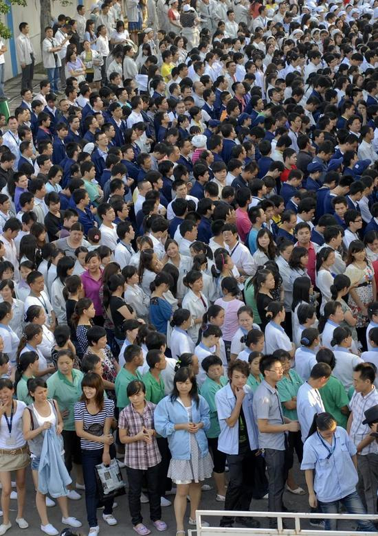 再加上各种技术学校的技能教育10多亿中国人获得了知识和文化当1978年改革开放的大幕拉开神奇的变化产生了大量人口进入工厂转变为产业工人(2012年东莞一家台资工厂,早课后工人走向车间上班,形成了一个“人”字,图片源自@VCG)