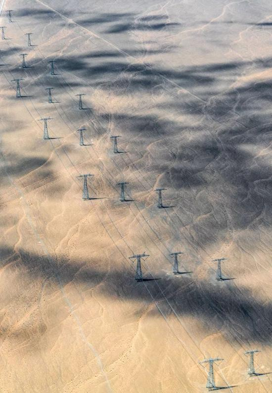 (甘肃酒泉的输电线路,摄影师@陈剑峰)