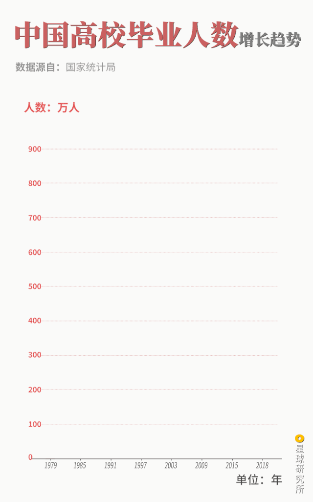 比许多国家的总人口都多这同样是人类史上最大规模的高等教育(1979-2018年中国大陆高校毕业生人数,制图@王朝阳&张靖/星球研究所)