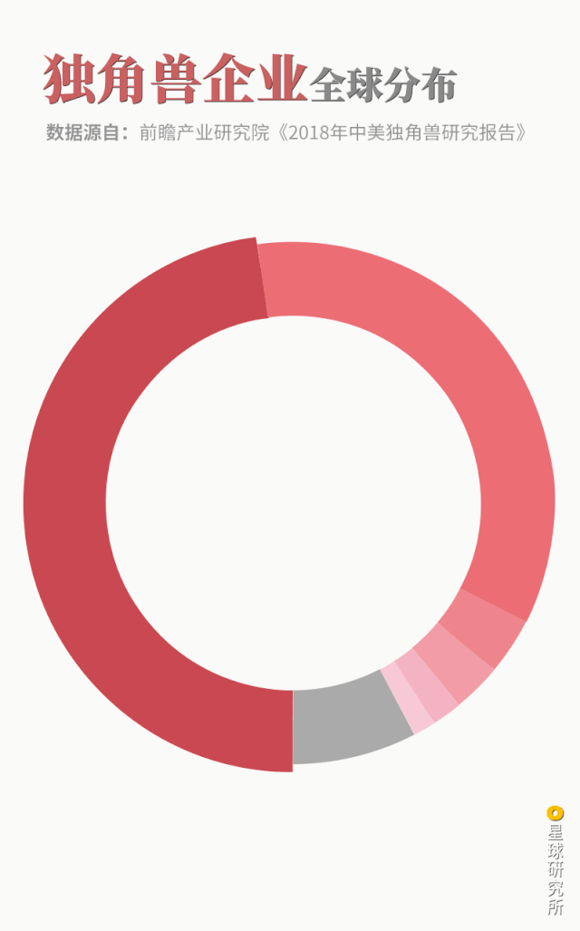 据统计全球429家成立不到10年估值超过10亿美元的独角兽企业有205家位于中国占比达48%(全球独角兽企业分布,制图@王朝阳&张靖/星球研究所)
