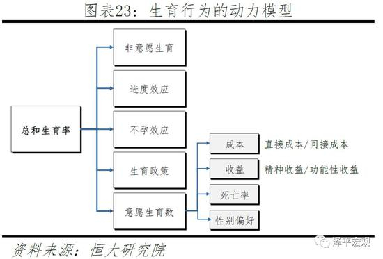 为什么不生?——生育基础削弱、生育成本约束。1)生育理论:从死亡率下降驱动到功利性生育意愿消退,再到成本约束。根据驱动生育率下降主导因素的变化,可将人类历史划分为四个阶段:一是高死亡率驱动阶段,人们需要以高生育率抗衡高死亡率从而保证收益最大化,总和生育率多在6以上。二是死亡率下降驱动阶段,低生育率也能保证收益最大化,总和生育率从6以上降到3左右。三是功利性生育消退阶段,人们的生育行为更接近情感需求,并重视子女质量提升,总和生育率大致从3降到2左右。四是成本约束的低生育率阶段,总和生育率降至更替水平2以下,低于意愿生育水平。2)晚婚晚育、单身丁克、不孕不育等削弱生育基础。中国结婚率2013年见顶回落,离婚率持续攀升;晚婚晚育现象日益突出,1990-2015年平均初育年龄从24.1岁推迟至26.3岁,主要初育年龄从20-27岁推迟到22-29岁。因婚姻市场匹配问题及单身主义等,“剩女”规模快速增加至约600万,学历越高“剩下”的概率越大。此外,丁克家庭、不孕不育人群增多削弱生育基础。3)住房教育医疗等直接成本、养老负担、机会成本高抑制生育行为,“生得起、养不起”。房价快速攀升,2004-2017年房贷收入比从17%增至44%;教育成本明显攀升,特别是公立幼儿园供给严重不足,1997-2017年中国公立幼儿园在读人数比例从95%降至44%。医疗费用持续上升,1995-2017年居民医疗保健支出上涨22.4倍。“四二一”家庭结构养老负担重挤压生育意愿。女性劳动参与率高但就业权益保障不够,导致生育的机会成本高。