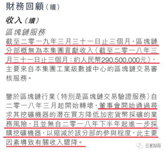 中新控股2019年第一季度财报中对区块链业务收入的描述