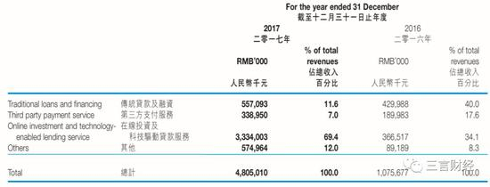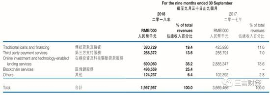 首先,中新控股2017年第三季度财报中,还未录入区块链业务。彼时公司核心业务主要是贷款业务、第三方支付以及财富管理,这三项分别占总收入的11.6%、7%和78.6%。其中财富管理业务收入占比将近80%。