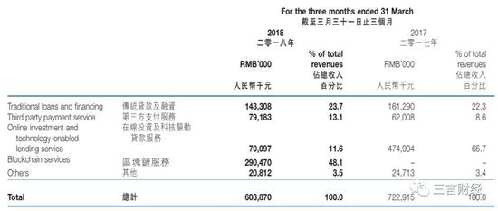 2018年前半年,区块链业务收入占中新控股总收入的32.1%,相比第一季度有所下降,但仍然是其主要收入来源。其中,财富管理业务收入占比29.3%、传统贷款业务收入占比20.4%、第三方支付业务占比13%。
