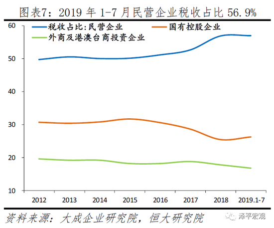 1)民营企业税收贡献超50%,民营企业是政府税收和国家财力的最大贡献者。1985年,全国工商税收中,全民所有制占比71.7%,集体所有制占比24.1%,个体经济仅占3.0%;2019年1-7月,民营企业税收占比56.9%。