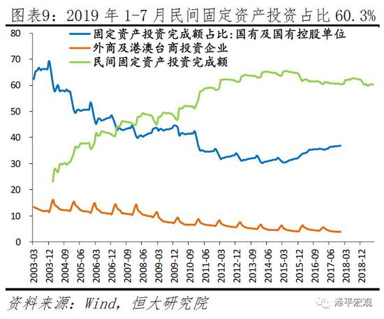 2)民间投资占比超60%,制造业投资中占比超85%,民营企业是投资的最大推动力。1980年,全社会固定资产投资中,国有经济占比81.9%,集体经济占比5.0%,个体经济占比13.1%。2019年1-7月,民间固定资产投资占比60.3%,在制造业投资中占比更达到85%以上。