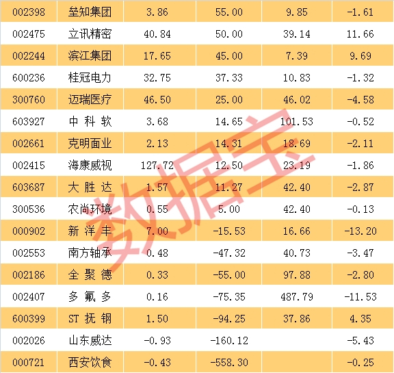 以净利中值计算,滨江集团、圣农发展、垒知集团等个股市盈率均低于10倍;桂冠电力、高盟新材、新洋丰等个股市盈率低于20倍,富春环保、恒大高新、海康威视、燕塘乳业等个股市盈率低于30倍。